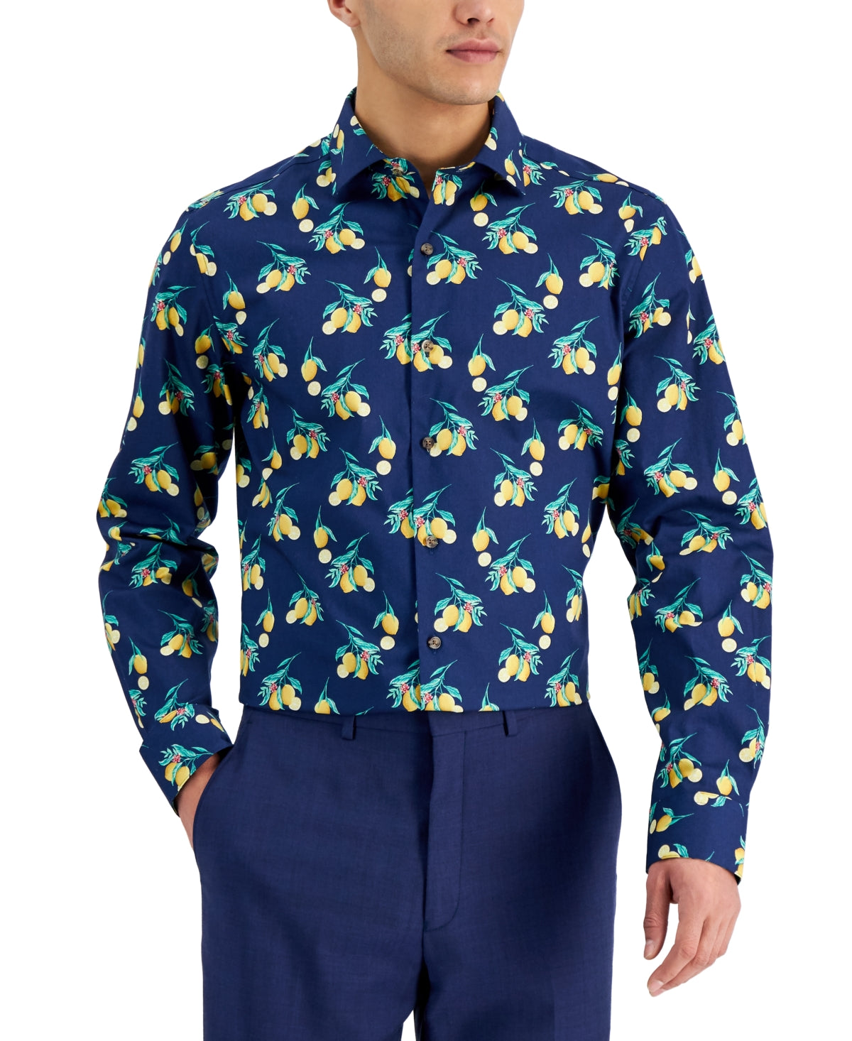 Add some zest to your wardrobe with this Bar III men's slim fit lemon-print dress shirt. The navy yellow color scheme adds a pop of color to any outfit, while the slim fit design gives a modern and tailored look. Perfect for a casual day at the office or a night out on the town. Available exclusively at Macy's.