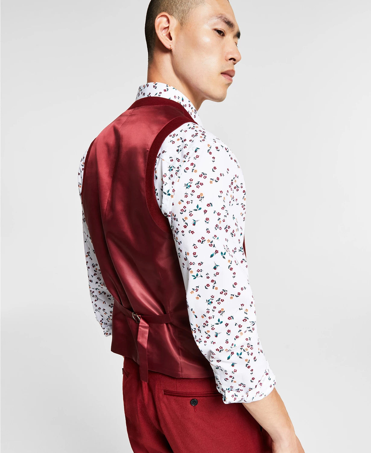 Bar III Mens Slim Fit Suit Vest Solid Red Solid Red Medium