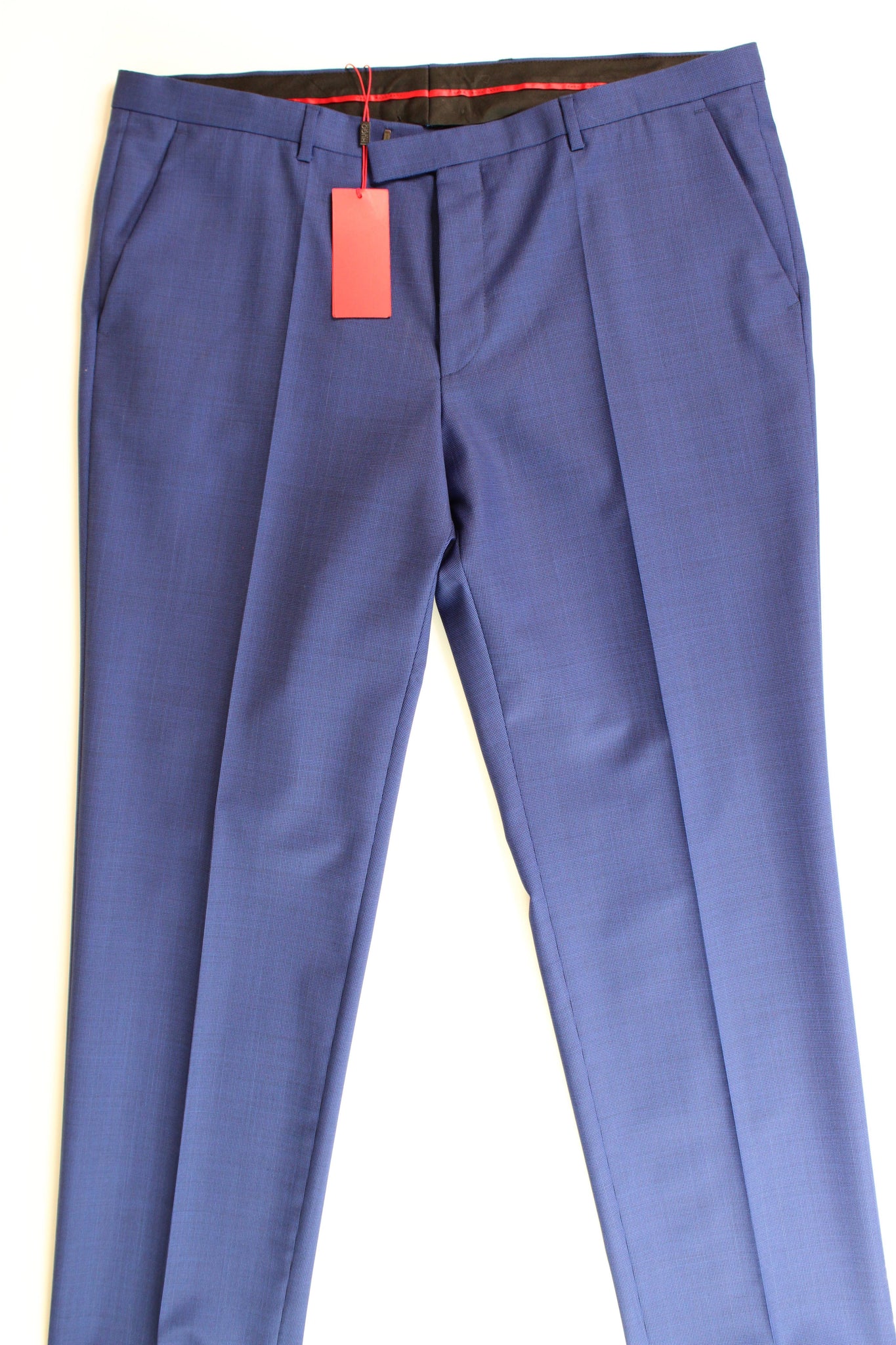 Cosmopolitan fashion, exceptional versatility and a luxurious feel. HUGO Hugo Boss supplies all with the tailored modern-fit, always-on-point bold blue-tone and virgin wool finish of these handsome suit separate pants.