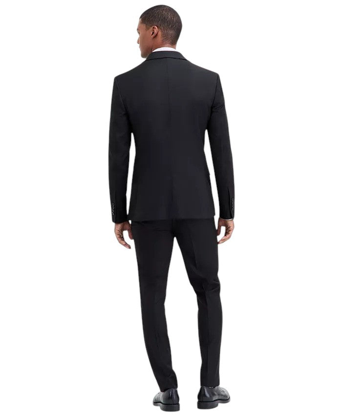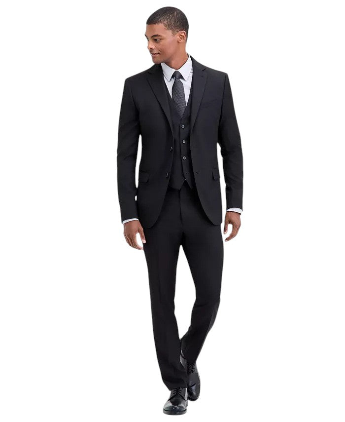 Dkny Mens fit 3 Piece Vested Suit 42 L / 35 Waist Black Solid Stretch