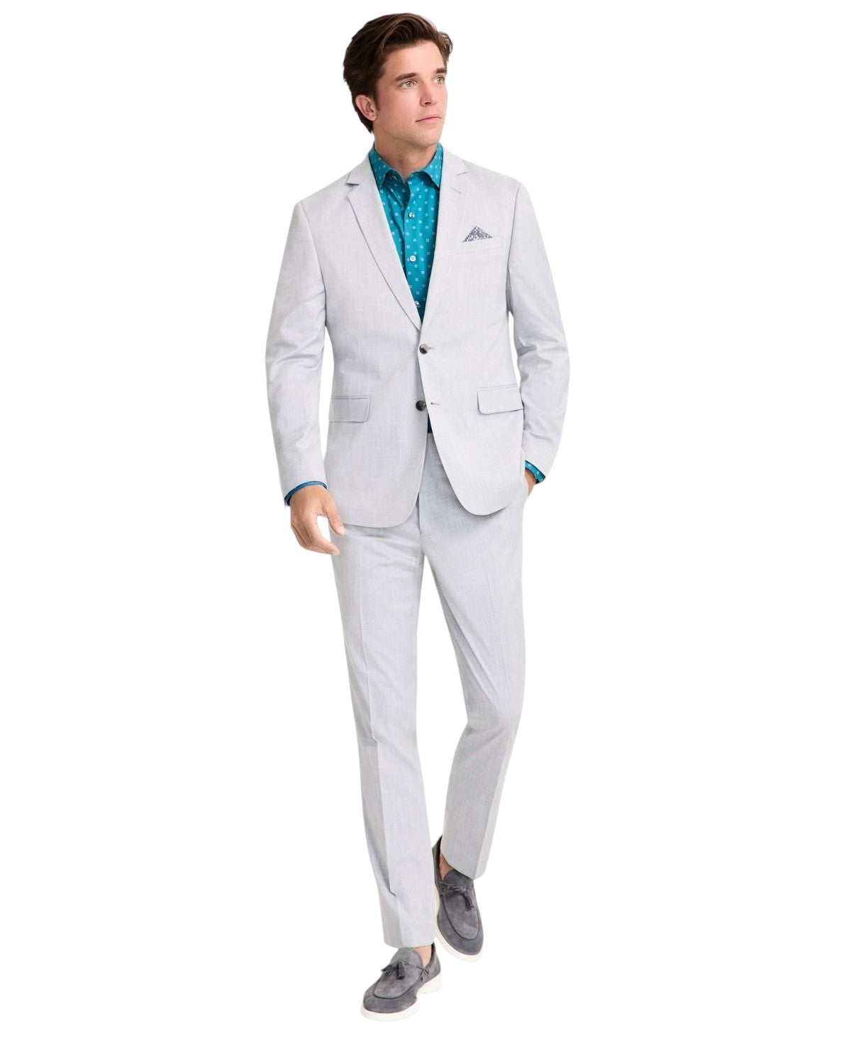 Nick Graham Mens Slim fit 2 Piece Suit 44 R / 37 Waist Light Grey Solid Stretch