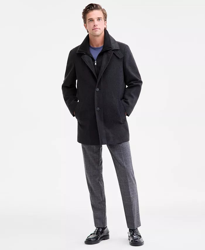Calvin Klein Mens Classic-Fit Coleman Overcoat Coat 36S Charcoal Grey