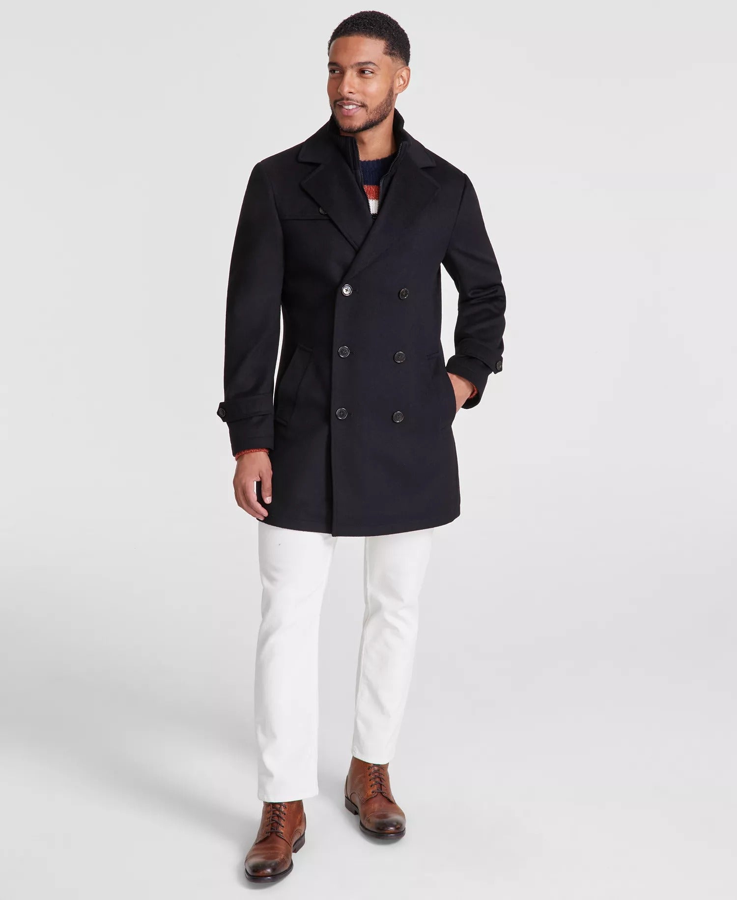 Michael Kors Mens Classic-Fit Wool Double Breasted Overcoat Coat 38R Navy Blue
