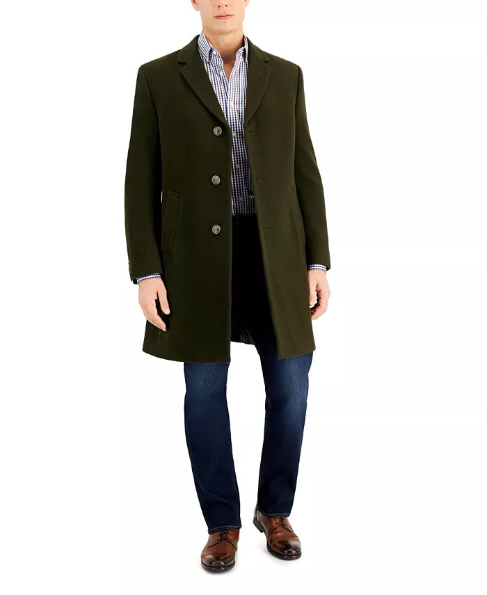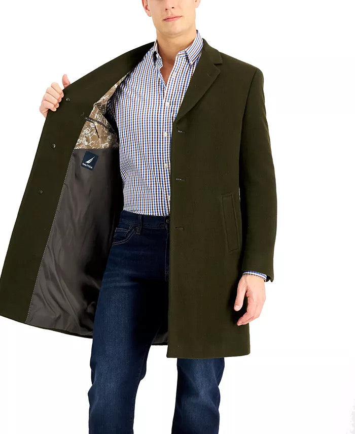 Nautica Mens Regular Fit Wool Overcoat Coat 42 Regular Olive Green