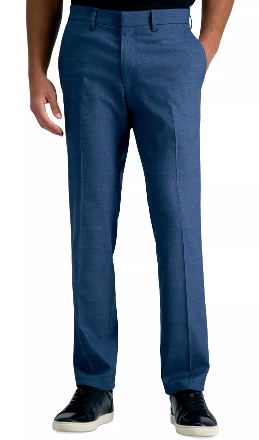 Kenneth Cole Mens Slim fit Dress Pants 32 / 29 Navy Blue Plaid Stretch