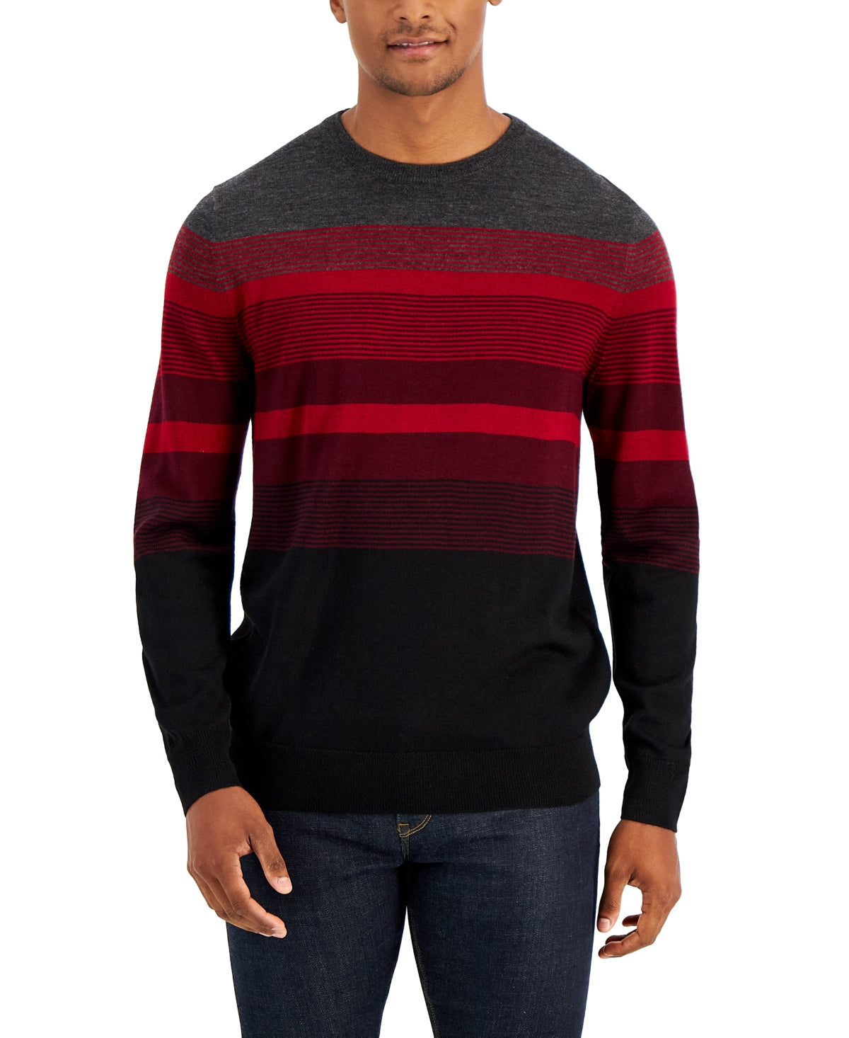 Club Room Mens Wool Blend Crewneck Sweater Black Red Large