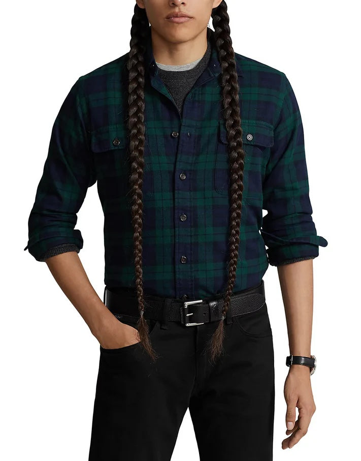Stay warm and stylish with the Polo Ralph Lauren Plaid Flannel Workshirt. Made from soft and durable cotton flannel, this shirt features a classic plaid pattern in versatile color combinations. Perfect for layering or wearing on its own, this workshirt is ideal for the office or casual outings. Complete with a button-down front and buttoned cuffs, this shirt is a must-have for any wardrobe.