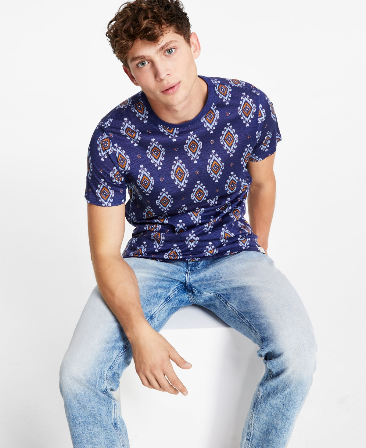 Sun+Stone Mens Jones Diamond T shirt Blue Small