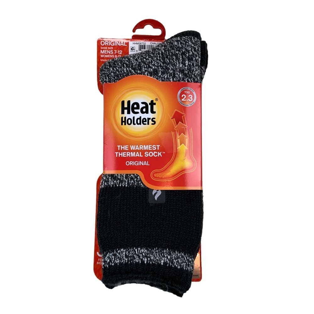 Heat Holders Men's Original Rugged Block Stripe Socks Charcoal Grey Size 7 - 12