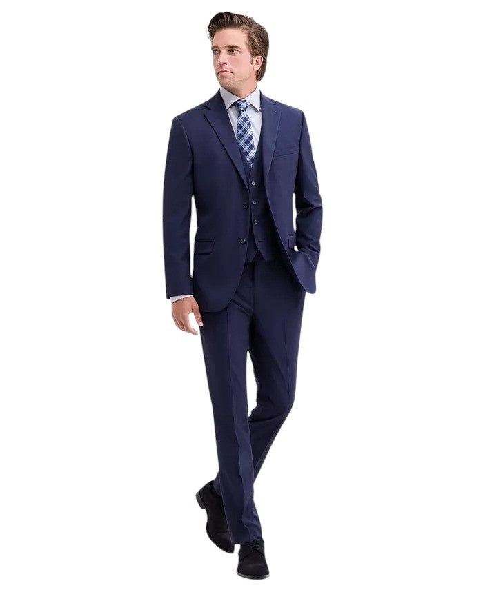 Dkny Mens Modern fit 3 Piece Vested Suit 42 R / 35 Waist Blue Solid Stretch