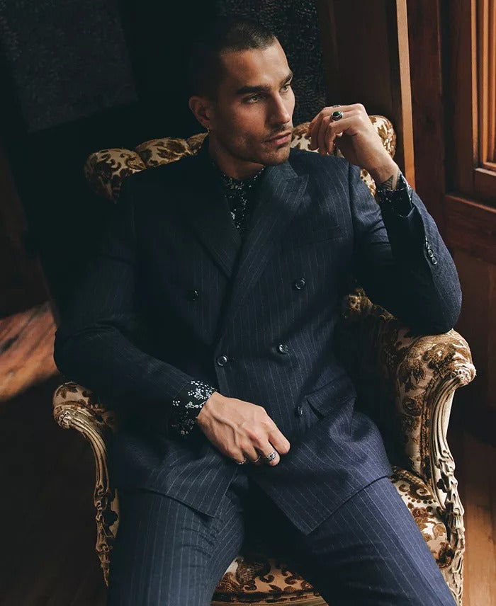 Tallia Mens Slim-Fit Stretch Pinstri Navy Pinstripe 48R Double Breasted