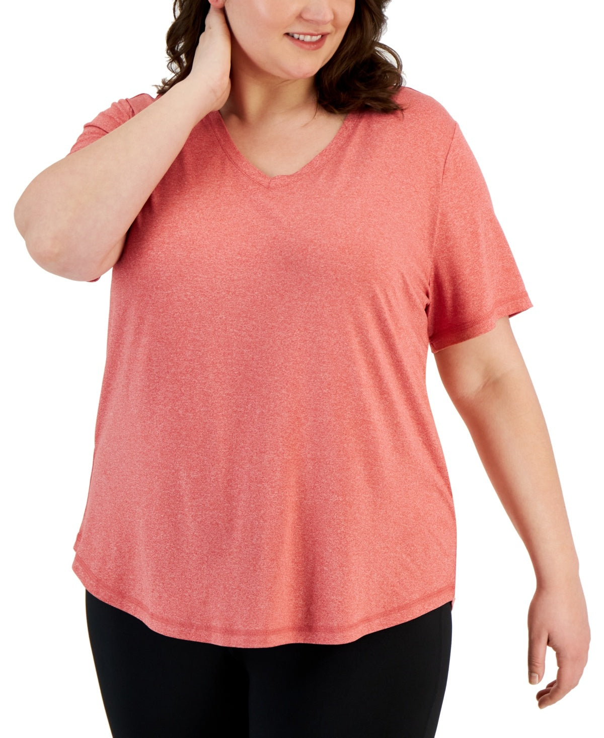 ID Ideology Plus Size Curved-Hem V-Neck To Gumball Red 2X