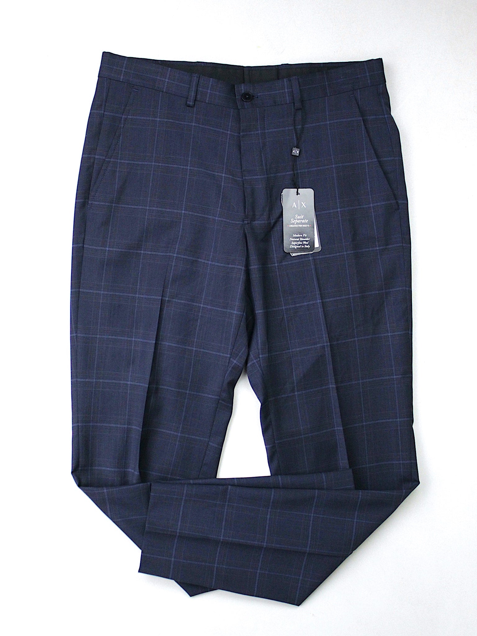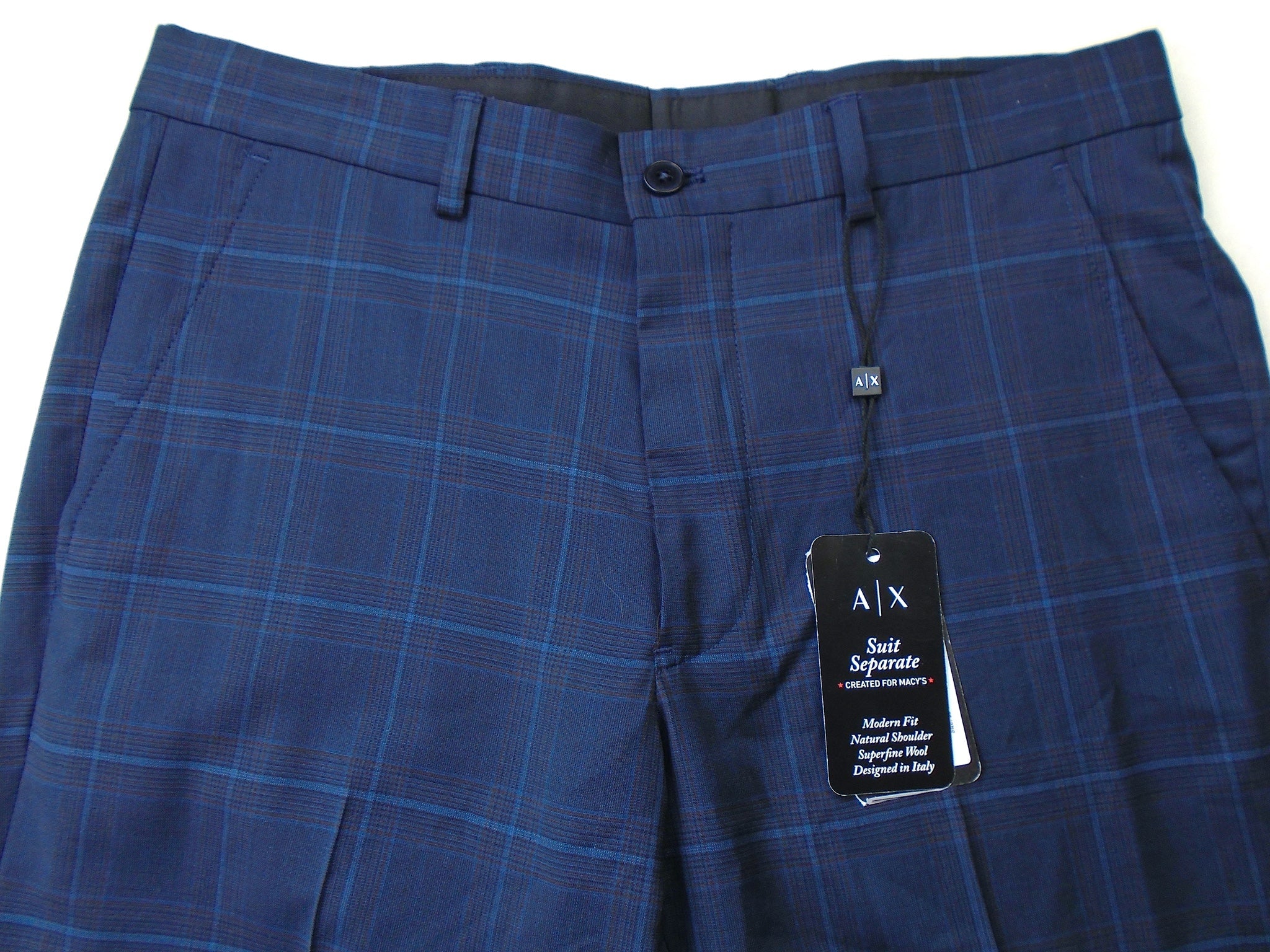 A|X ARMANI EXCHANGE Men's Slim-Fit Dress Pants 32 x 30 Navy Blue Plaid
