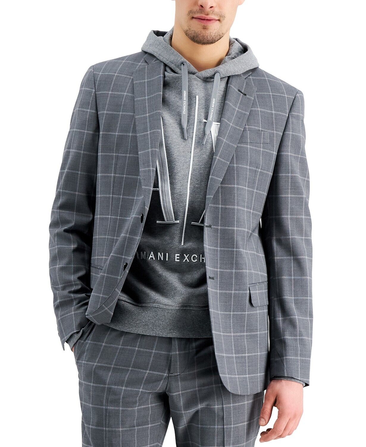 A|X Armani Exchange Men's Slim-Fit Suit Jacket 44R Grey WIndowopane