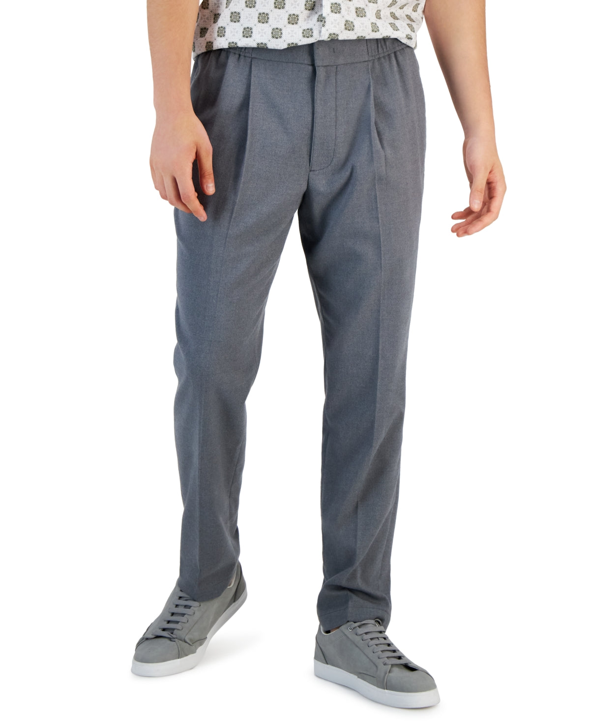 Alfani Men's Brushed Twill Melange Pleated Trouser Pants Grey Large