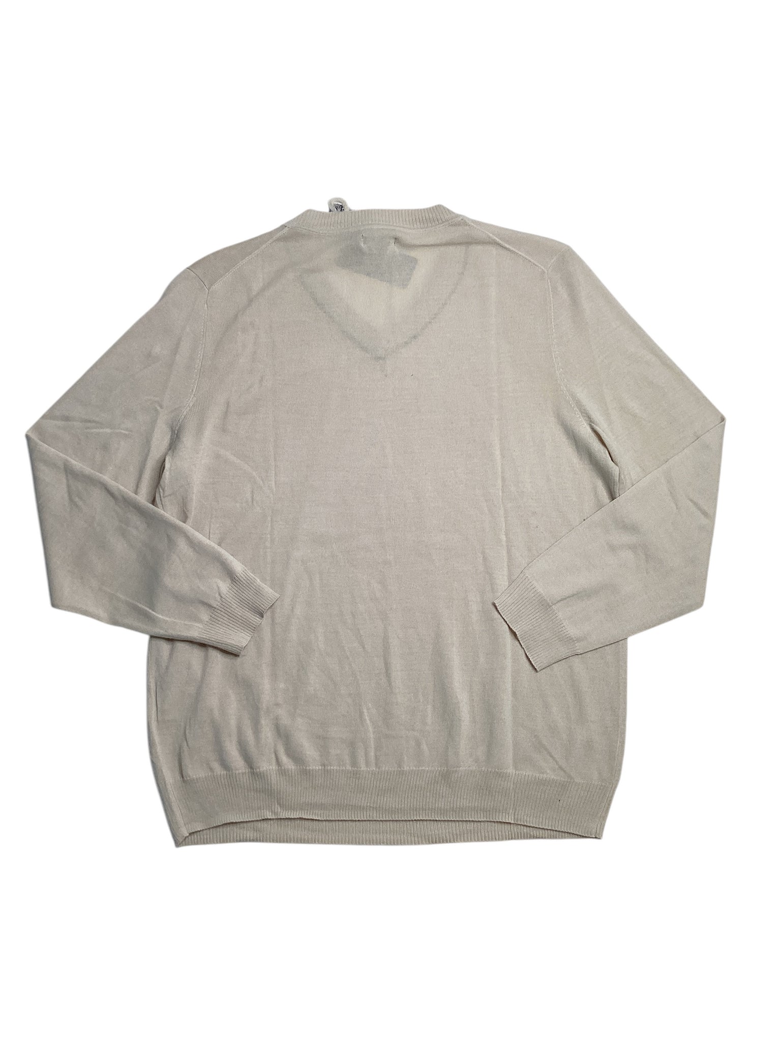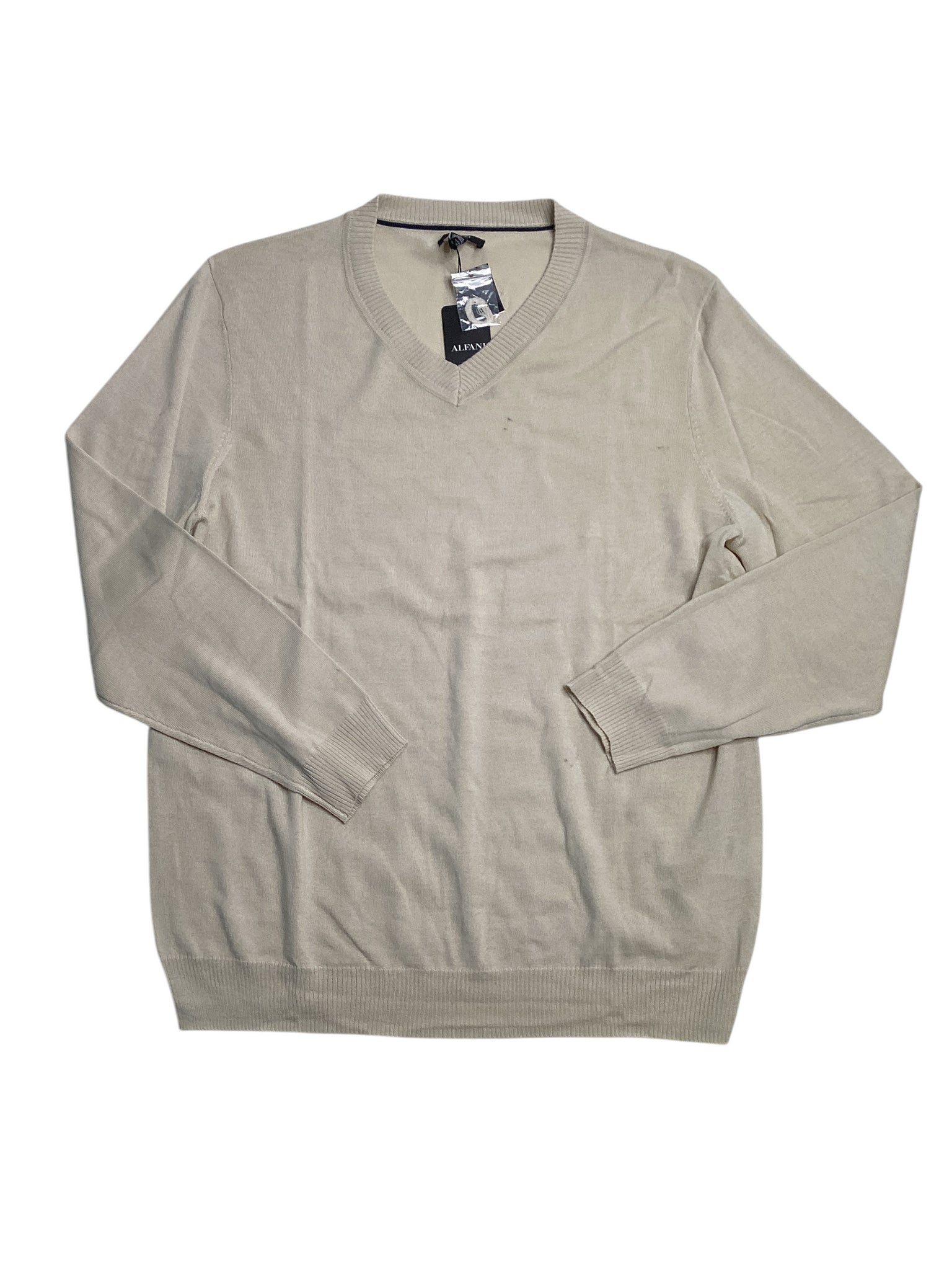 Alfani Men's Long Sleeve V Neck Merino Sweater Brown Rice Beige Large