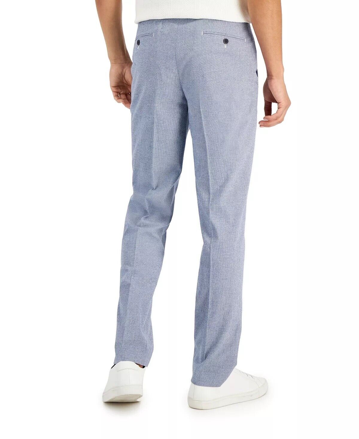 ALFANI Men's Slim-Fit Seersucker Check Dress Pants Blue White 34 x 34