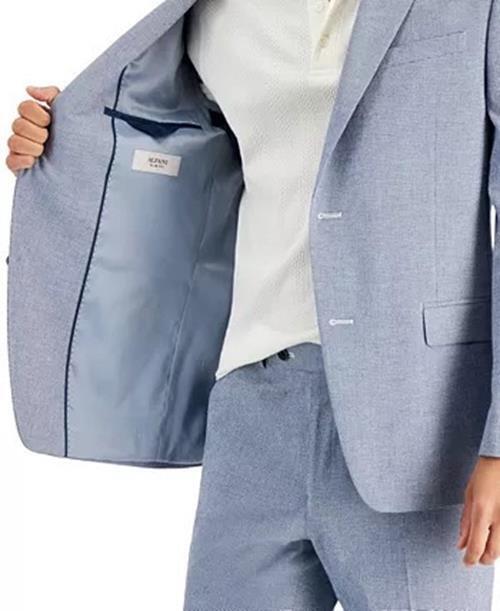 ALFANI Men's Slim-Fit Seersucker Check Suit Jacket Blue 36R / 2 Button