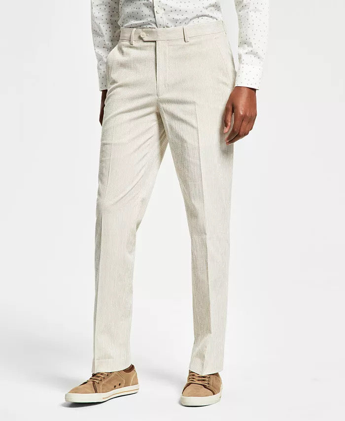 ALFANI Men's Slim-Fit Seersucker Stripe Dress Pants Tan Cream 32 X 30