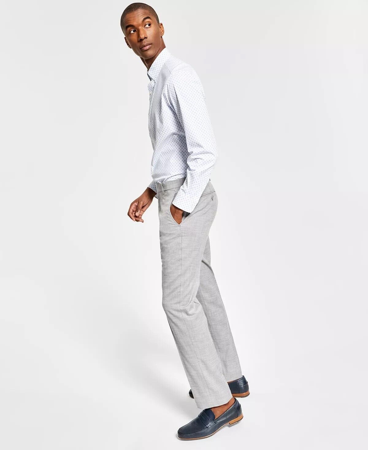 - Permanent crease; knit styling; stretch performance