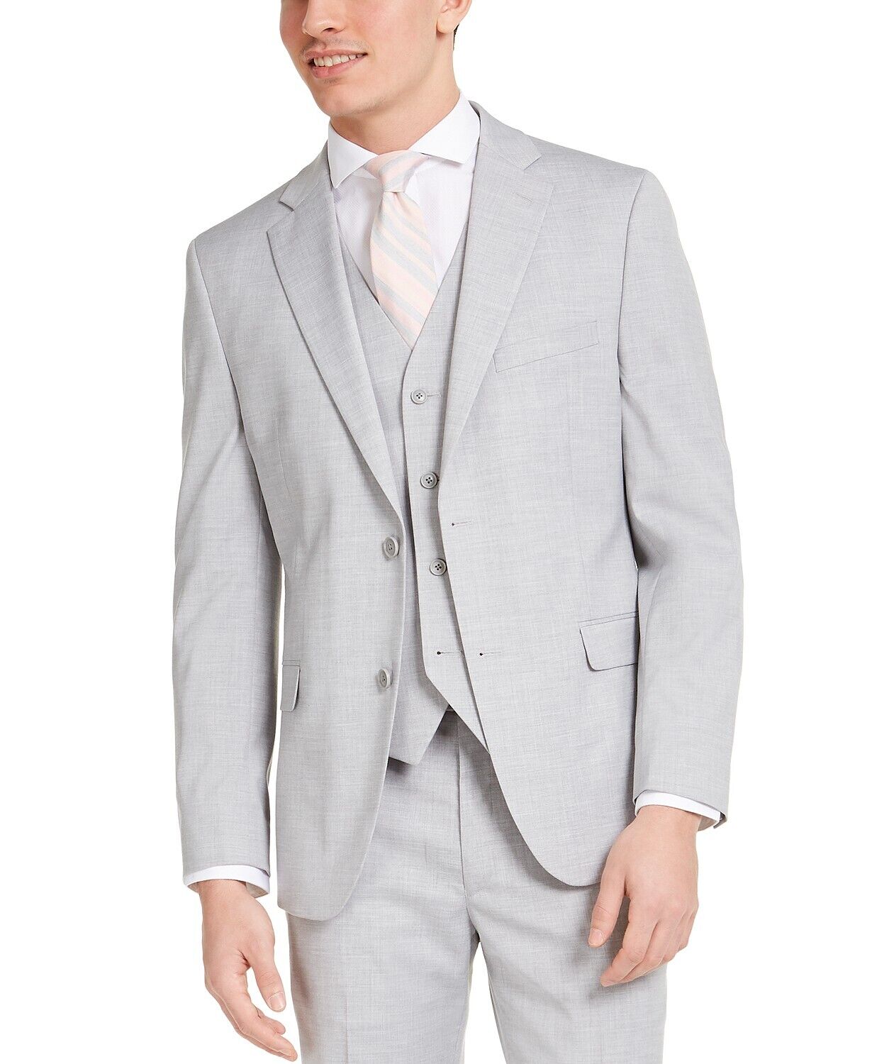 Bring a more modern feel to your sophisticated essentials with the refined slim fit of this versatile light gray suit jacket from Alfani.