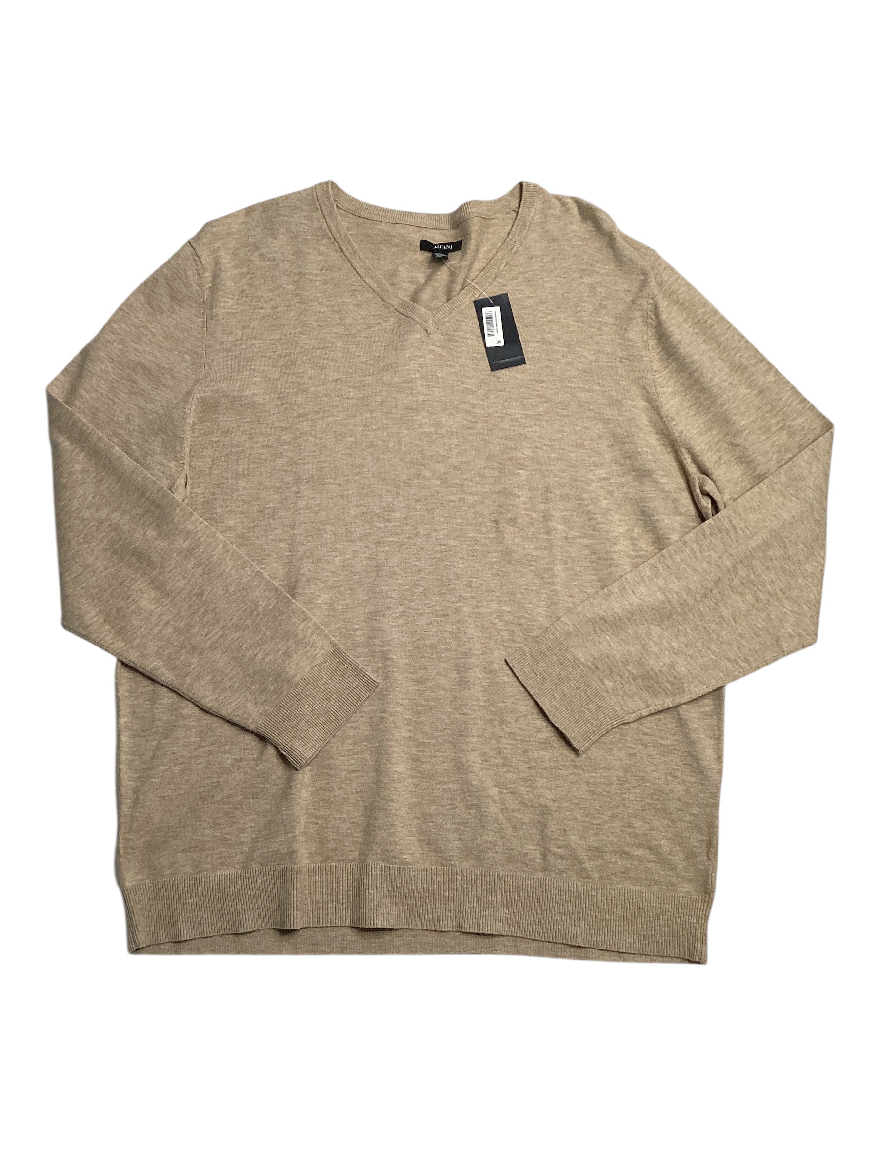 Alfani Mens Solid V Neck Cotton Sweater Twill Heather Beige 2XL