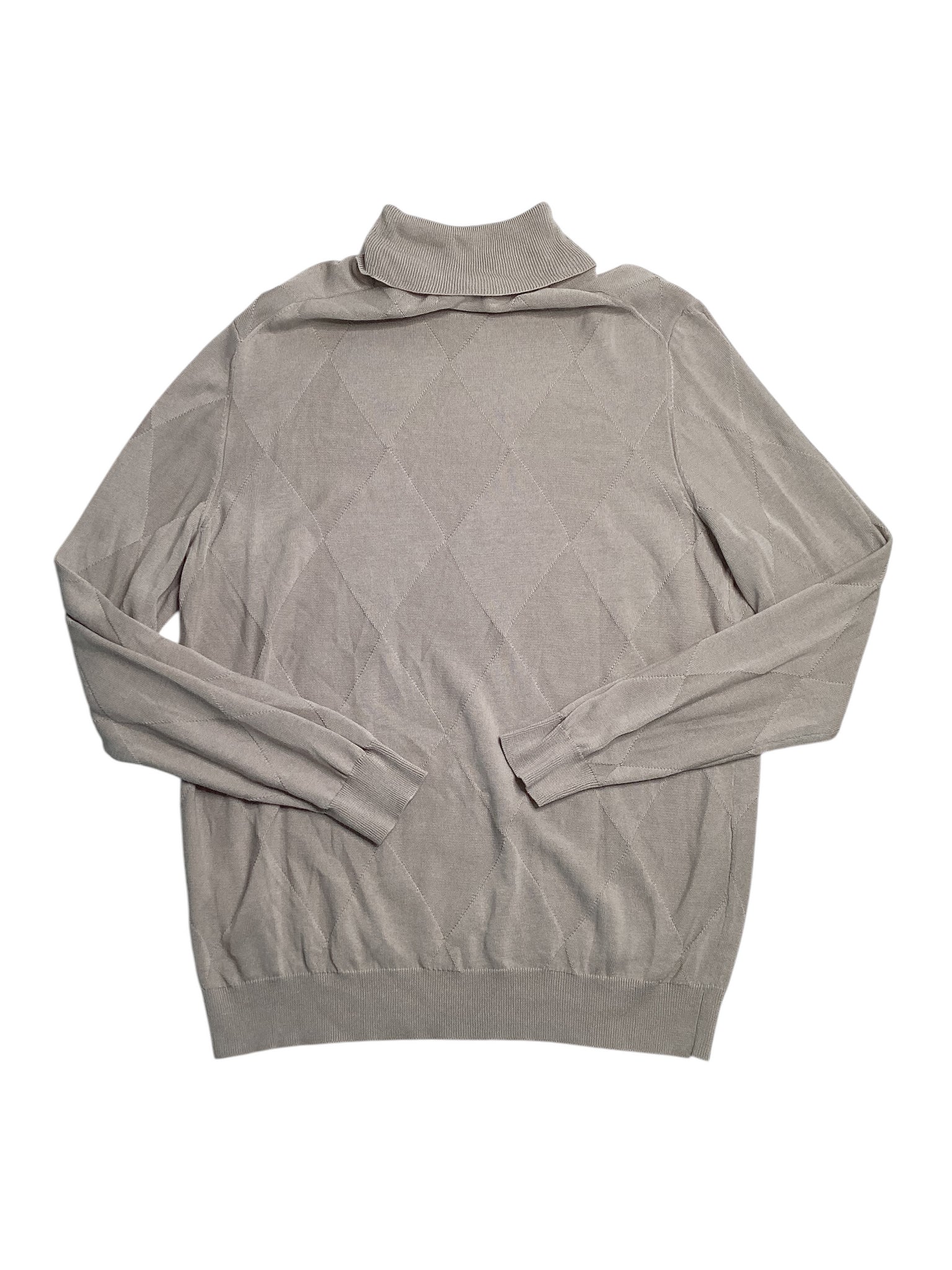 Stay cozy and stylish in the Alfani Men's Textured Turtleneck Sweater in London Plane XL. This sweater features a classic turtleneck design with a textured knit pattern, perfect for adding a touch of sophistication to any outfit. The XL size ensures a comfortable and flattering fit for all-day wear. Made from high-quality materials, this sweater is sure to become a staple in your wardrobe this season. Perfect for layering or wearing on its own, this sweater is versatile and on-trend.