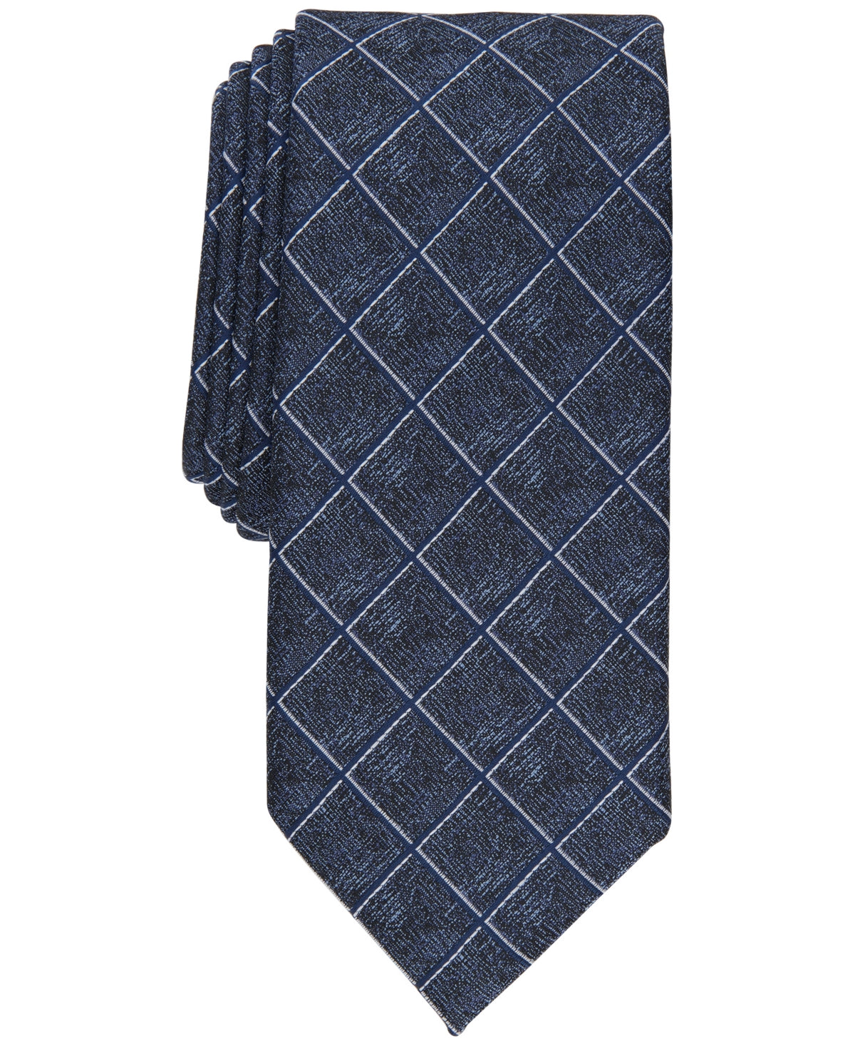 Alfani Men's Wendell Grid Tie Navy Bllue Necktie