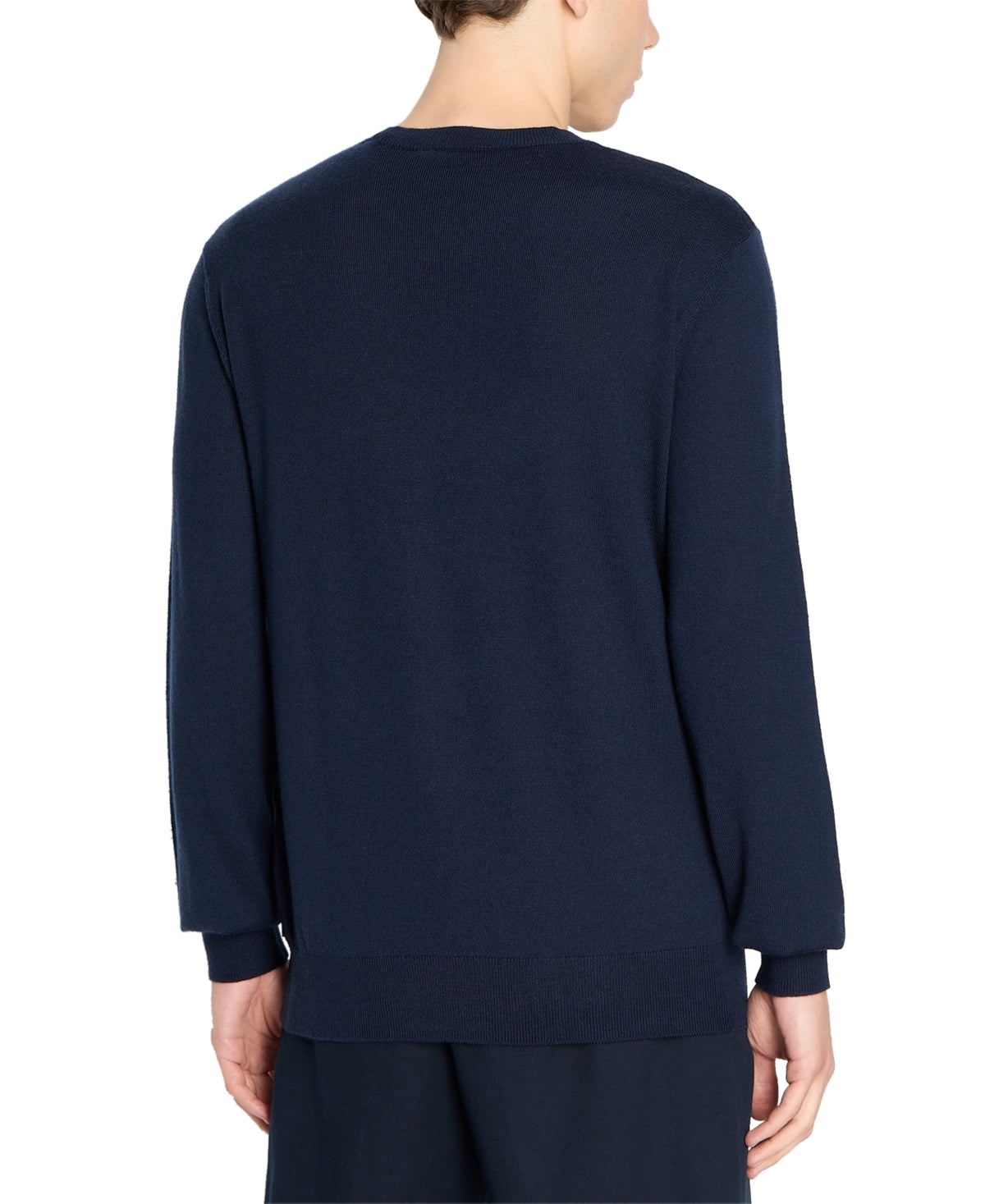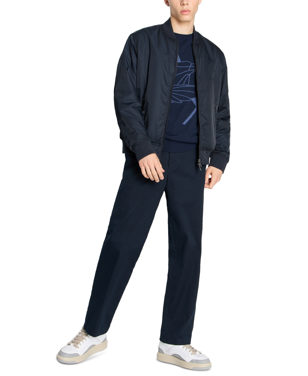 Stay warm and stylish in this A|X Armani Exchange Men's Eagle Logo Crewneck Sweater. Made from a soft and cozy fabric blend, this navy sweater features the iconic eagle logo on the chest for a sleek and modern look. Perfect for layering or wearing on its own, this sweater is a versatile and timeless addition to any wardrobe. Perfect for casual outings or relaxed days at home, this sweater will keep you comfortable and on-trend all season long.