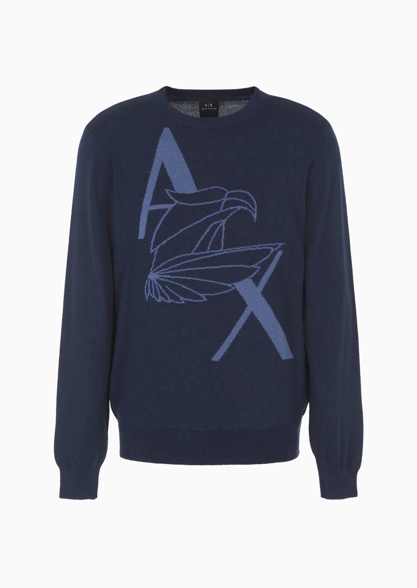 AX Armani Exchange Mens Eagle Logo Crewneck Sweater Navy Blue XL