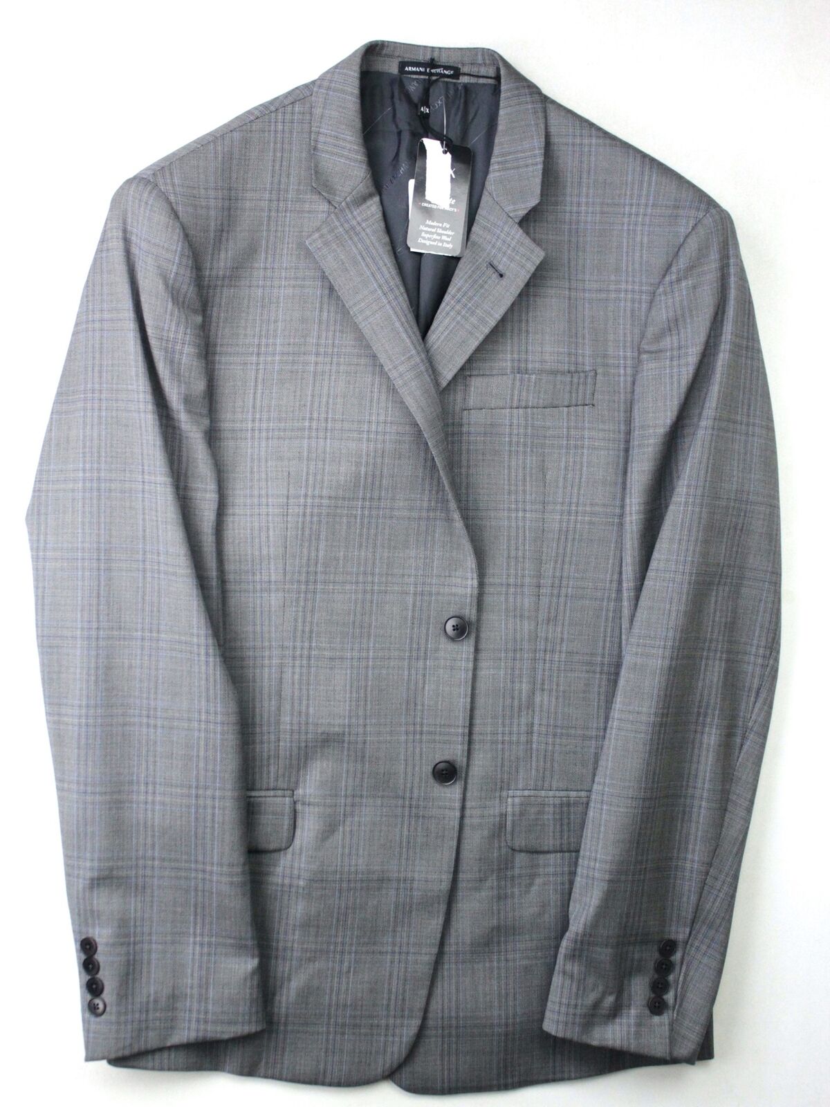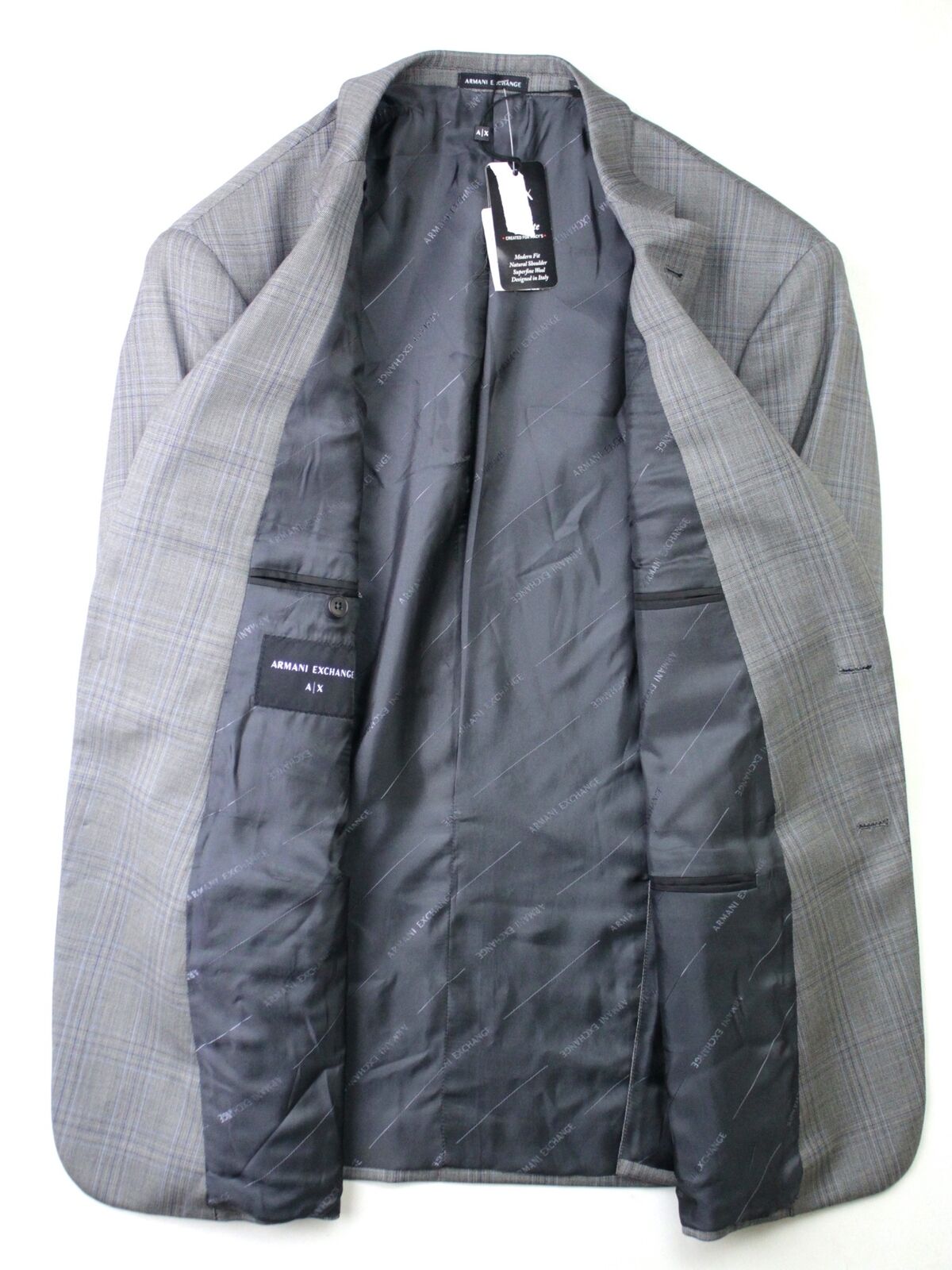 AX Armani Exchange Men's Slim-Fit Plaid Suit Jacket 40S Grey / Light Blue