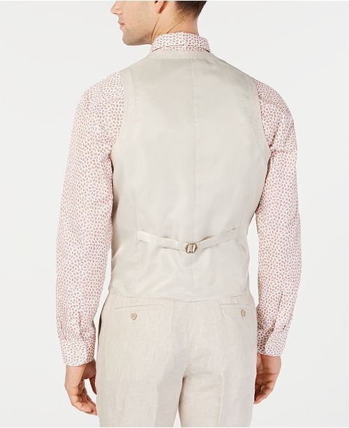 Tailored with a streamlined slim profile and with a rich linen finish, this handsome tan suit vest by Bar III exudes refined warm-weather style.
