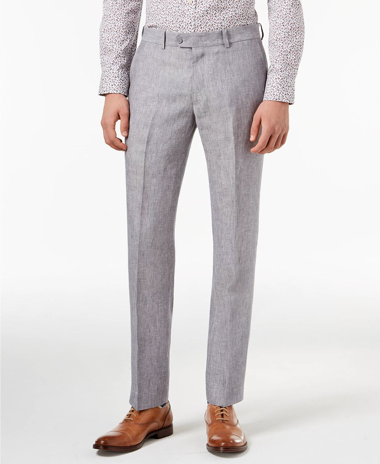 Bar III Light Gray Chambray Slim-Fit Linen Dress Pants 40 x 32