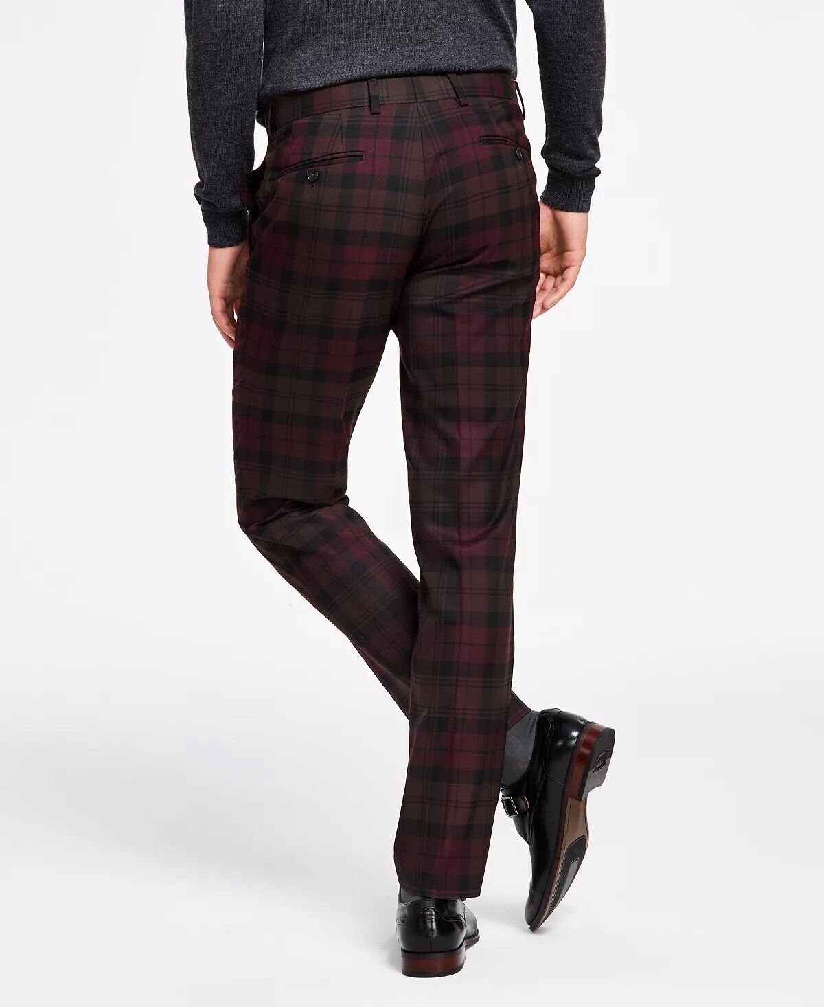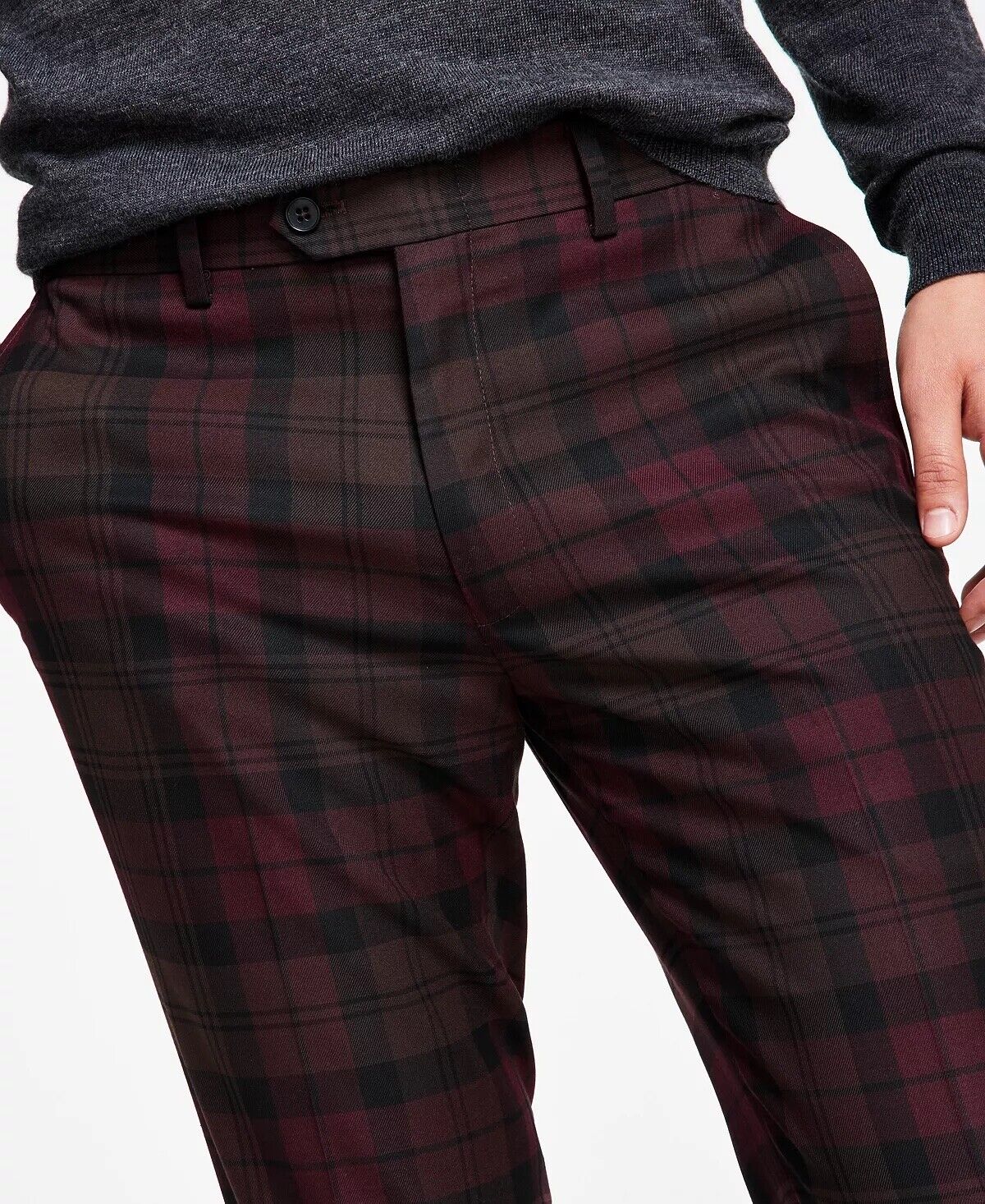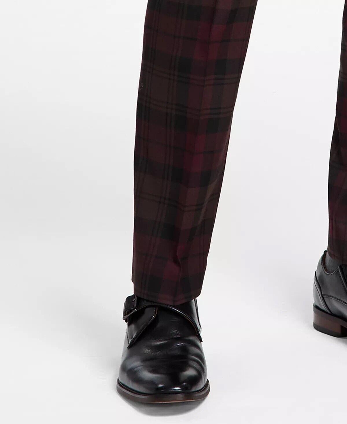 There comes a time when you have to update your look, and that time is now. These slim-fit burgundy plaid suit separate pants from Bar III will elevate your style to the next level.