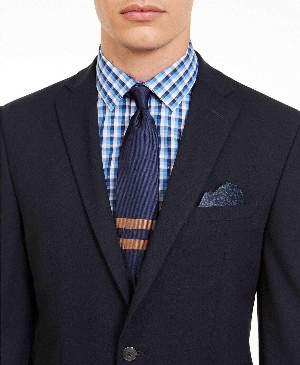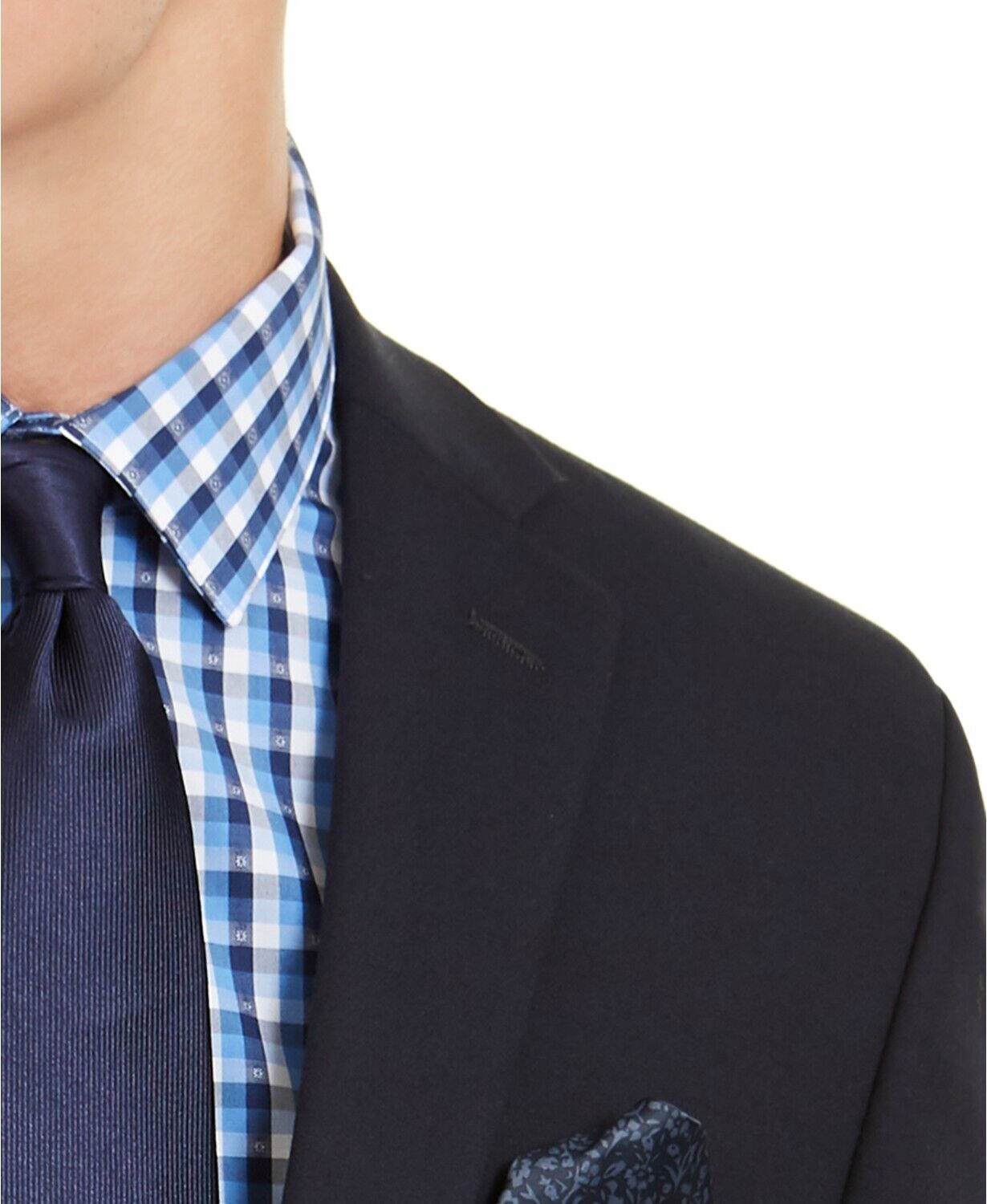 Add a whole new level of confidence and style to your work-ready wardrobe with the sharp extra-slim fit and rich blue tone of this wrinkle-resistant suit jacket from Bar III.