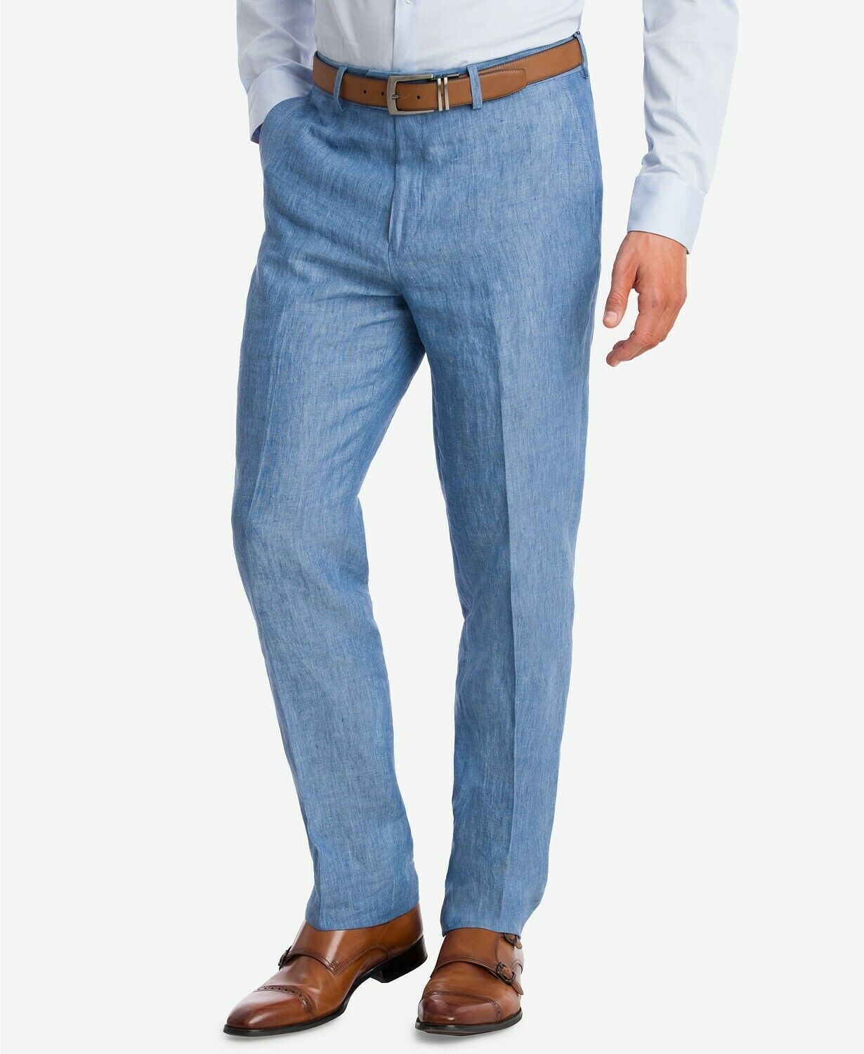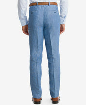Present a refreshing professional look at the office or out on the town with the polished slim fit and cool blue chambray tone of these luxe linen suit pants from Bar III.