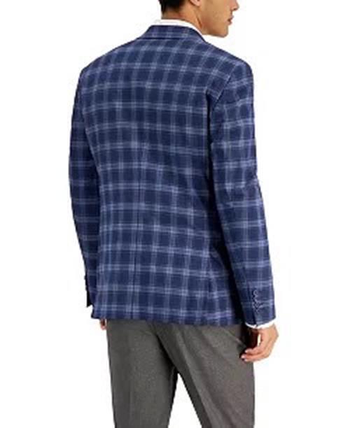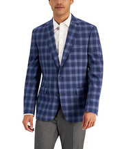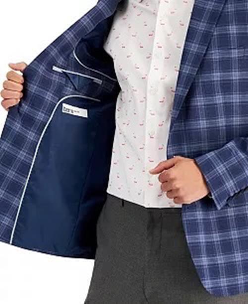 BAR III Men's Slim-Fit Patterned Blazer 40R Grey Blue Plaid Sport Coat