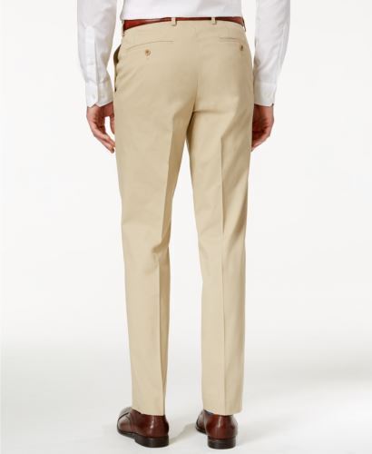 Enjoy the freedom of stretch fabric and the added comfort it provides when you opt for these tan slim-fit stretch pants from Bar III.