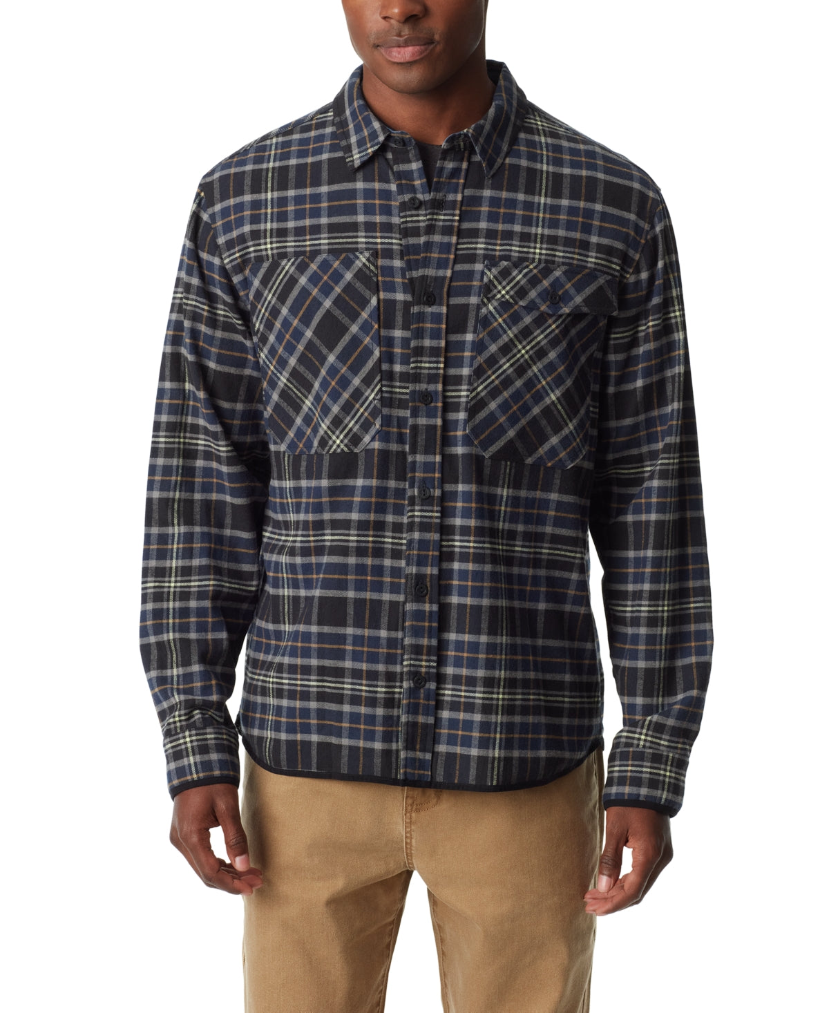 BASS OUTDOOR Mens Stretch Flannel Button Down Shirt Caviar Core Plaid Large