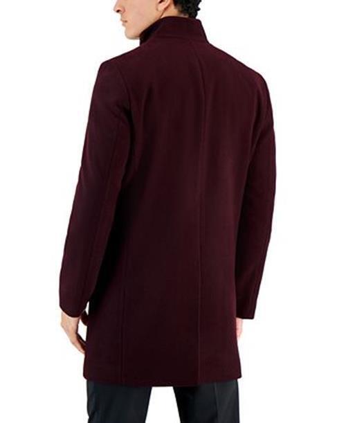 Calvin Klein Men's Mayden Slim-Fit Overcoat Coat 42S Burgundy Wine Wool