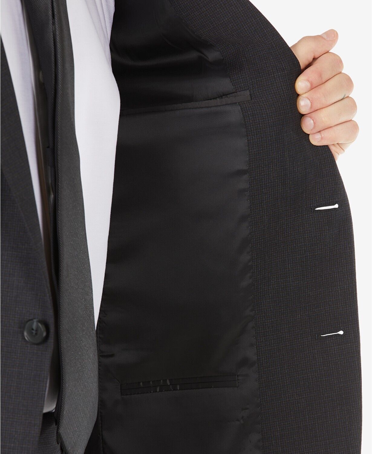 Calvin Klein Men's Mini Check Skinny-Fit Wool Blend Suit Jacket 38S Black Brown