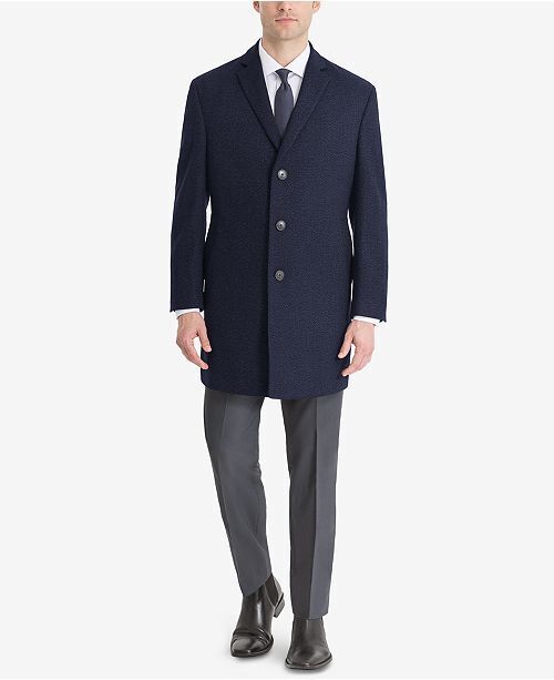 Radiate success and contemporary cold-weather style with this Prosper overcoat from Calvin Klein, designed with an extra-slim fit and a timeless notched lapel.
