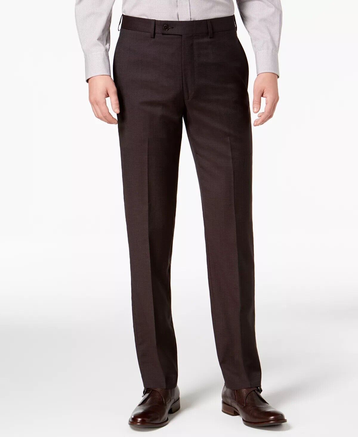 CALVIN KLEIN Men's Slim-Fit Dress Pants Brown 32 x 32 Washable