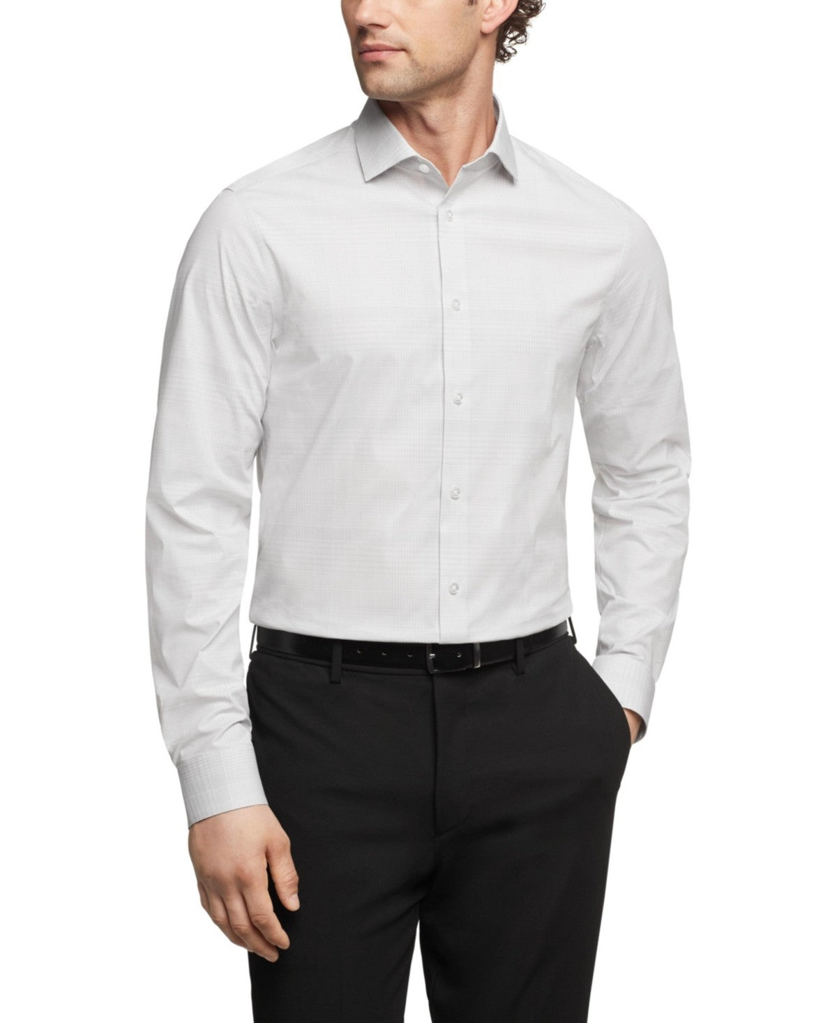 Calvin Klein Men Slim fit Dress Shirt XL 17.5 in 32-33 Grey Plaid