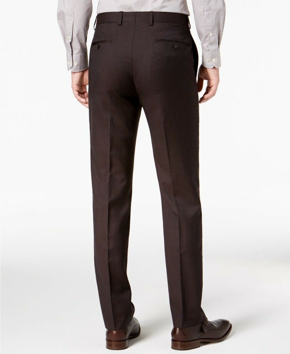 Calvin Klein Men's Slim-Fit Solid Dress Pants 34 x 30 Brown Check