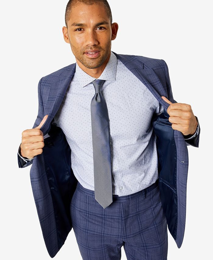 Take your professional look to the next level with this slim-fit plaid jacket from Calvin Klein. It's part of a two-piece suit, but it can be worn separately as well.