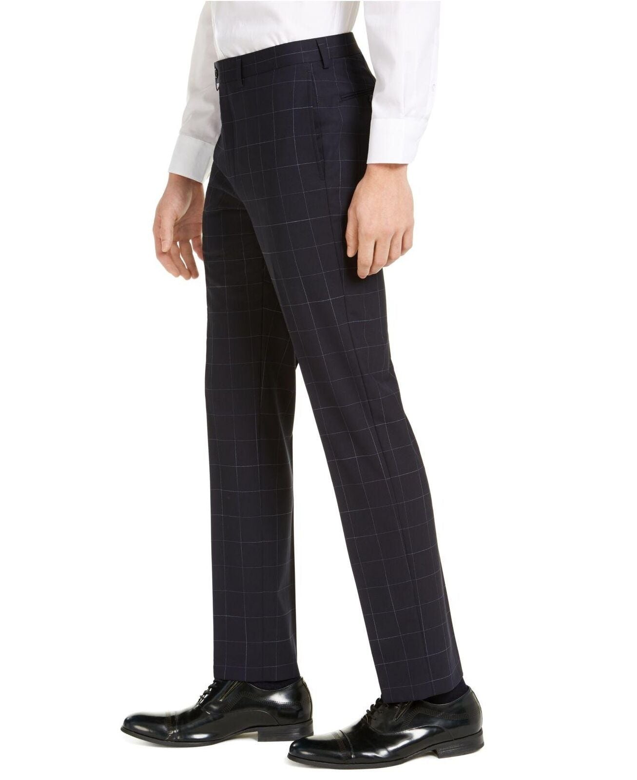 Calvin Klein Men's X-Fit Extra-Slim Fit Navy Blue Windowpane Pants 33 X 30
