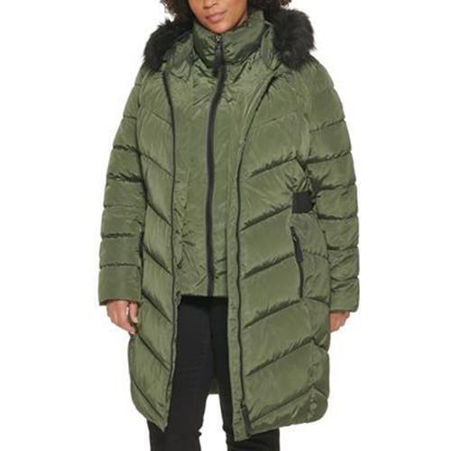 Calvin Klein Plus Size Faux Fur Trim Hooded Puffer Coat 1X Eden Green