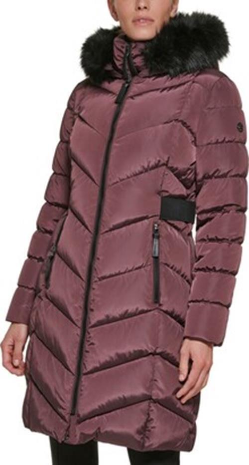 CALVIN KLEIN Women's Faux-Fur-Trim-Hooded Puffer Coat Medium Dark Chianti Red