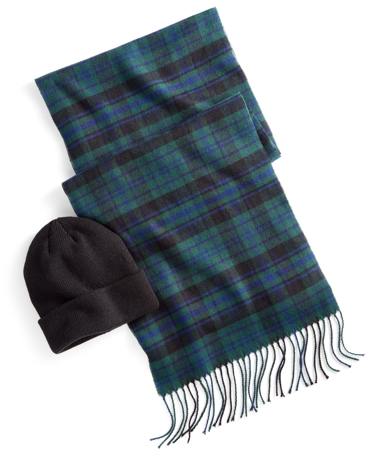 Club Room Men's Beanie Hat & Scarf Set Blue Black Green OSFA
